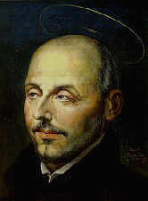 Santísimo padre San Ignacio de Loyola, fundador de la Compañía de Jesús; escogido entre millares para dilatar la gloria de Dios por los cuatro ángulos del mundo; varón eminentísimo en toda clase de virtudes, pero especialmente en la pureza de intención con que siempre anhelabas la mayor gloria de Dios; héroe insigne de penitencia, humildad y prudencia; infatigable, constante, devotísimo, prodigiosísimo; de caridad excelentísima para con Dios, de vivísima fe y esperanza robustísima; me gozo, amado Padre mío, de verte enriquecido con tantas y tan eminentes prerrogativas, y te suplico alcances a todos tus hijos aquel espíritu que te animaba, y a mí una intención tan recta, que hasta en las menores cosas busque puramente la gloria divina, a imitación tuya, y logre por este medio ser de tu compañía en la gloria. Amén