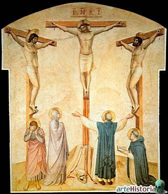 En la imagen: Jesús conversa con Dimas. San Juan se tapa la cara, la Santísima Virgen mira impotente a su hijo. Santo Domingo abre los brazos y Santo Tomás se encuentra de rodillas