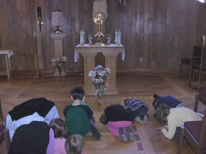 Si no tienen Santísimo, frente al Sagrario, antes o después de Misa cuando estén